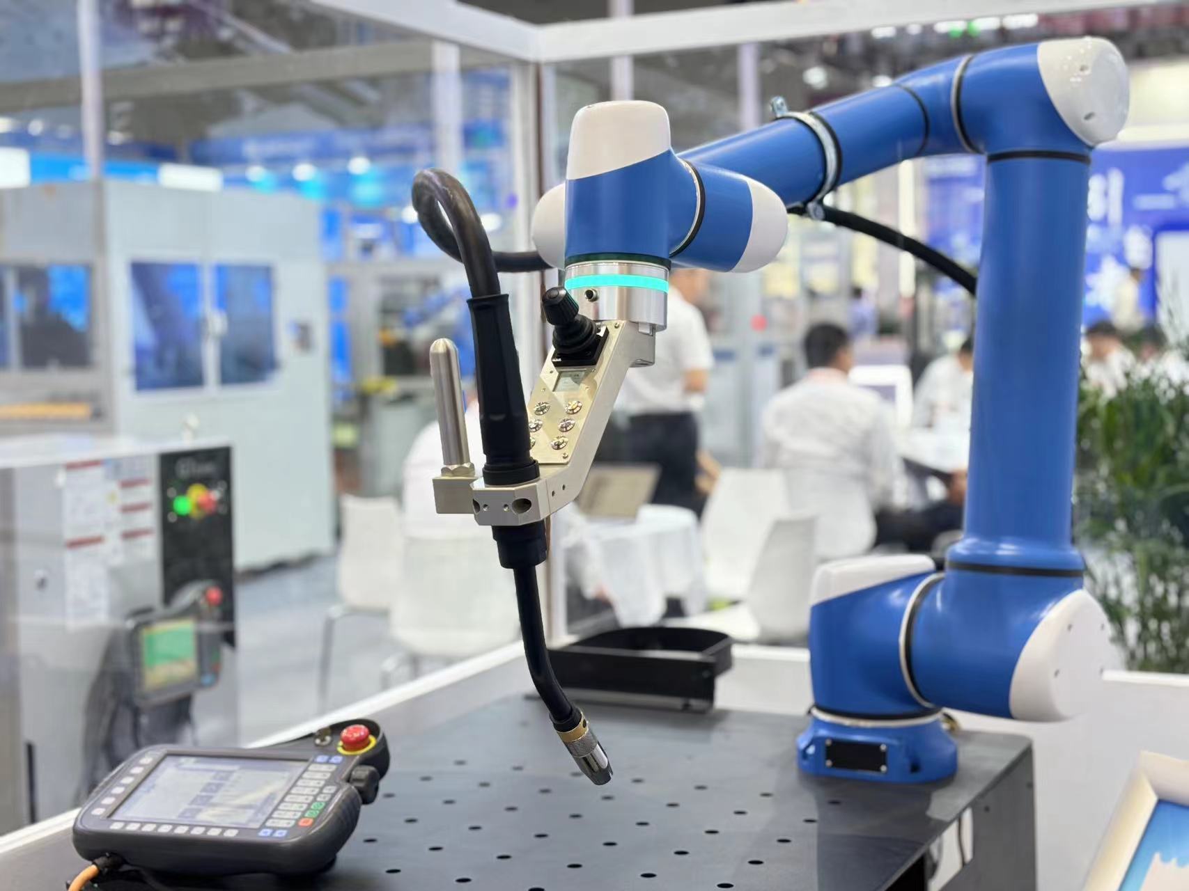 展位现场,2024年全新发布的协作焊接机器人工作站人气极高,将客户的目光牢牢吸引。今年会电竞协作焊接机器人不仅传承了今年会电竞工业机器人深厚的焊接功底,同时还具备协作机器人轻便、便于部署、示教拖动等优秀势能,在技术创新和用户体验上实现了全新突破,可广泛应用于汽车制造、电子制造、航空航天、船舶制造、工程机械、兵器工业等行业。