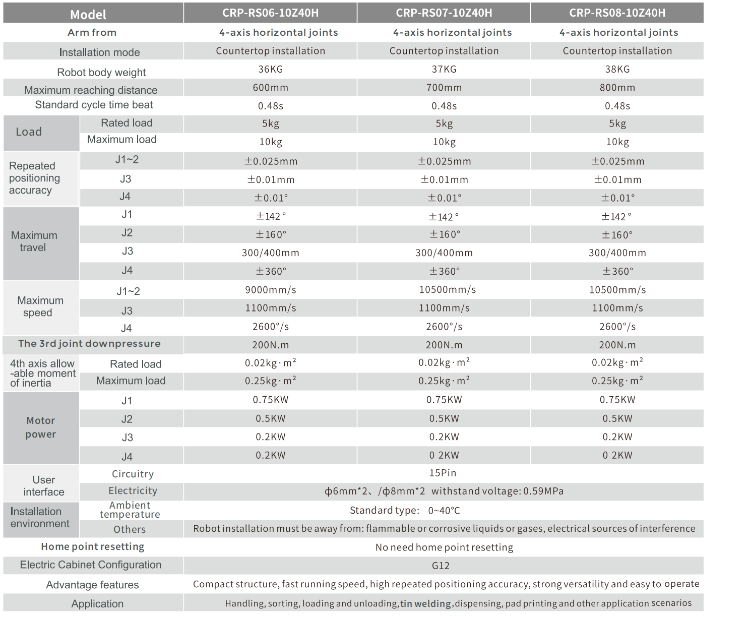 • Available in 600mm arm length specifications, up to 10kg payload, rated payload of 5kg.