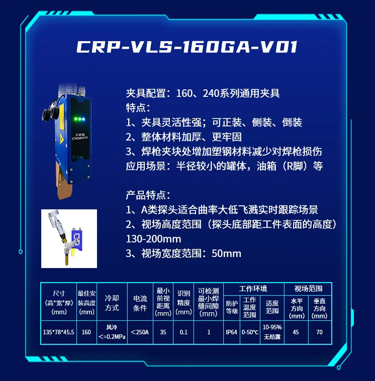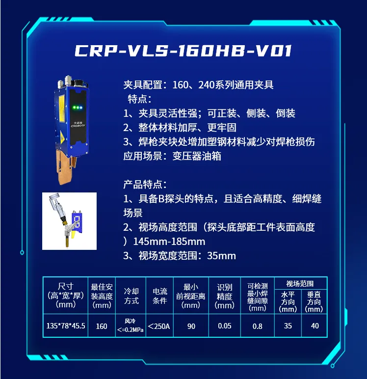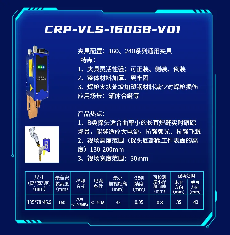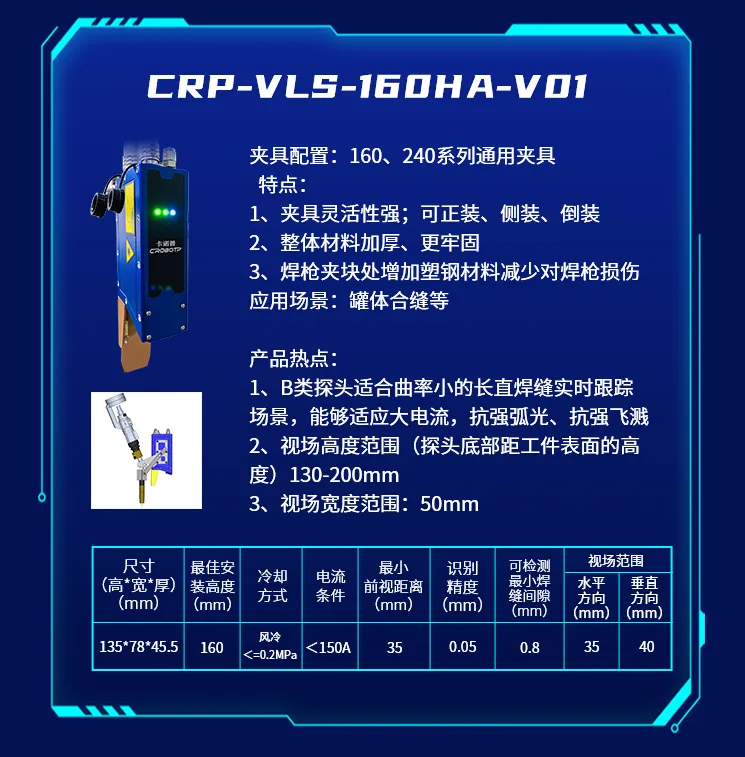 为了适应不同的焊接场景,推出了CRP-VLS-330GB-V01新款机型激光焊缝跟踪器