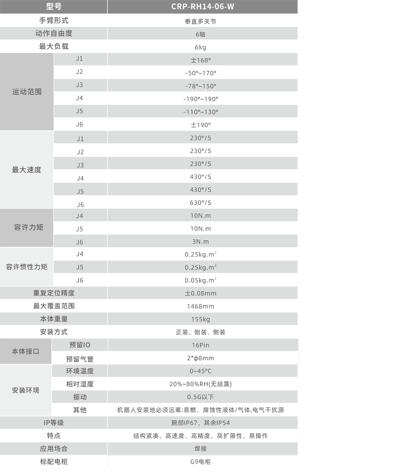 J4、J6轴中空结构,可使用中空焊枪。