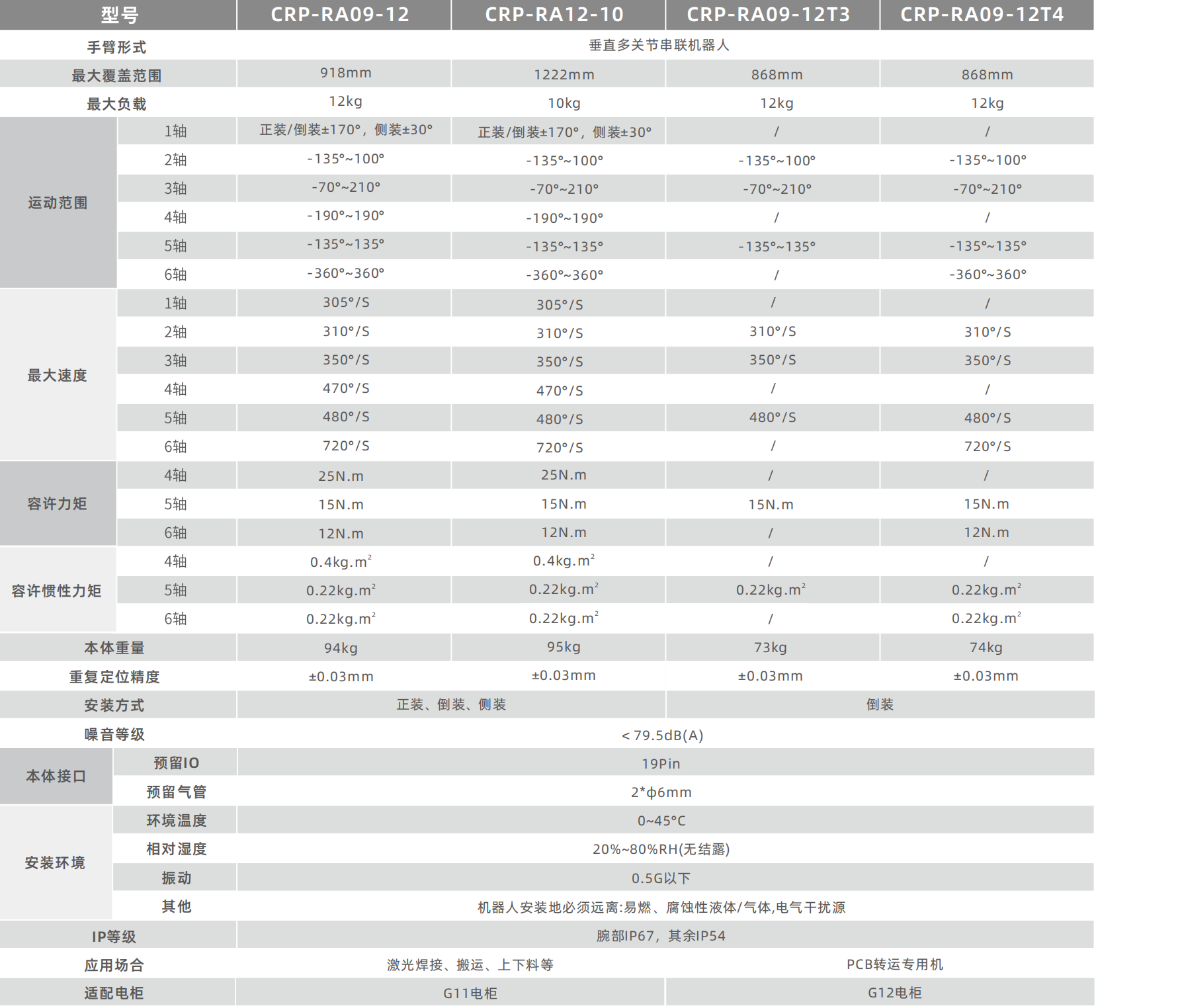 高速高精,效率更高。整机采用全铝机身设计,较同级别产品质量更轻,RA09-12系列相比RA09A-07系列左右速度提高了30%,标准门型轨迹0.42S,重复定位精度士0.03mm,实现快速生效,提高生产产能。